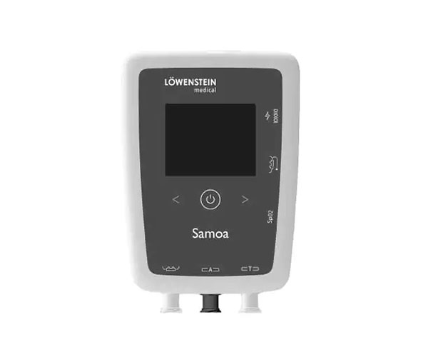 Löwenstein Samoa, uyku solunum bozukluklarının ön tespiti ve CPAP tedavi kontrolünün profesyonel sağlık kuruluşlarında (hastane, klinik ve uyku laboratuvarı) ve evde sağlık hizmetlerinde yapılabilmesi için üretilen uyku tarama kayıt sistemidir. Cihaz uyku solunum bozukluklarının tespitinin yanı sıra, PAP titrasyonu ve CPAP tedavisinin differansiyel basınç ölçümü ile daha fazla veriyi incelemenize olanak tanır. Samoa (uyku tarama) yetişkinlerde ve çocuklarda doktorlar tarafından veya talimatıyla kullanılmak üzere tasarlanmıştır.